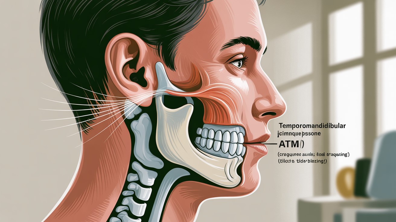 L’articulation temporo-mandibulaire (ATM) correspond à l’endroit où la machoire inférieure s’attache au crâne, sur l’os Temporal ; de chaque côté du visage et proche de l’oreille.